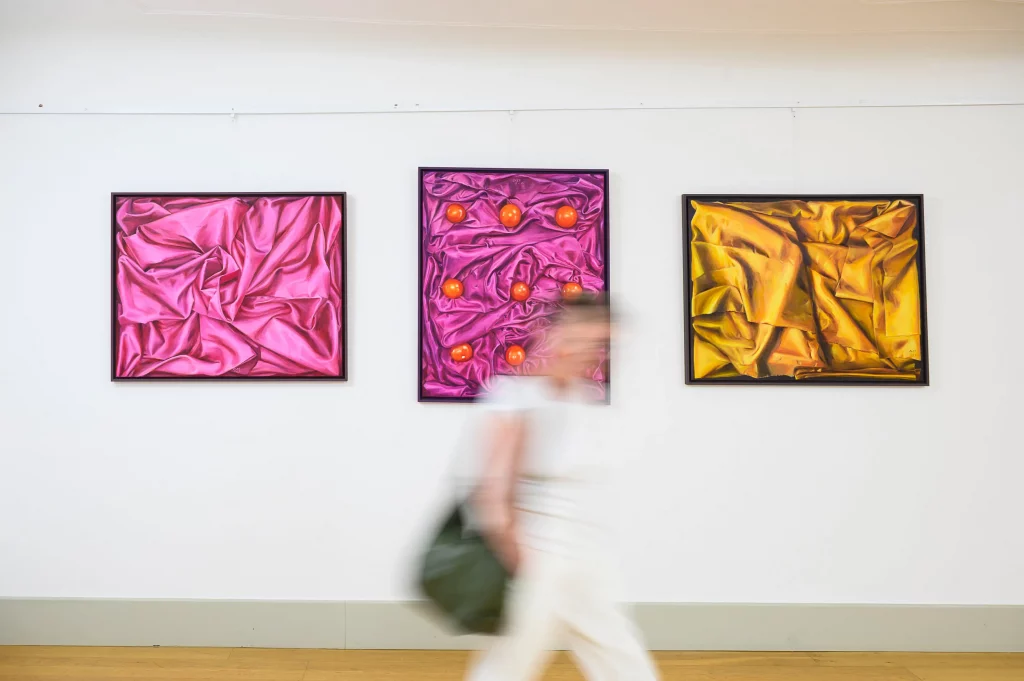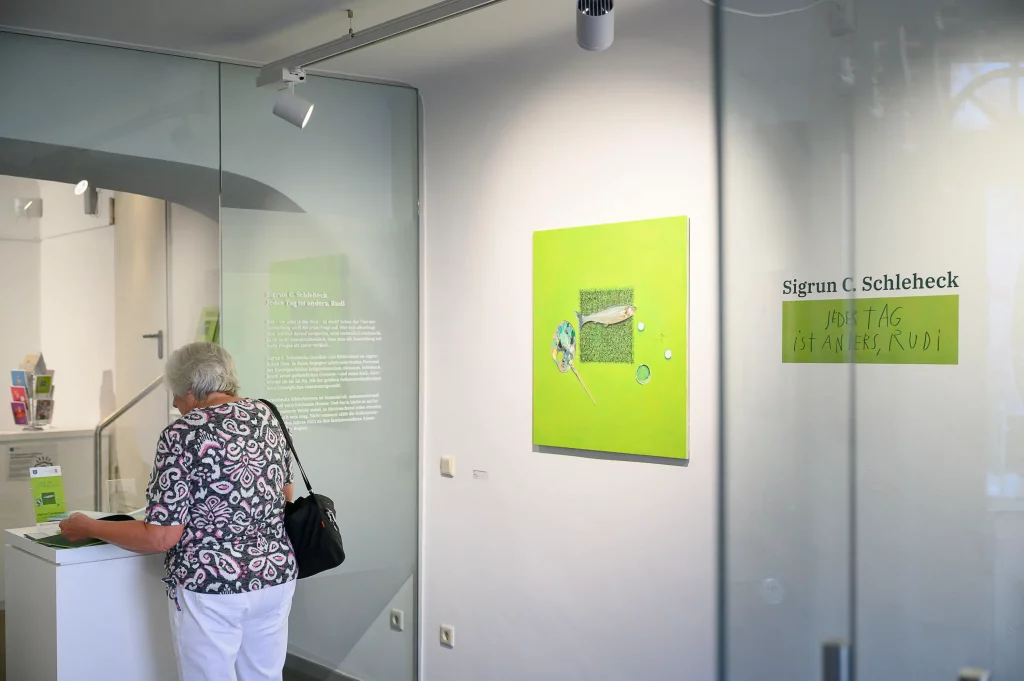 „Jeder Tag ist anders, Rudi“ heißt die Ausstellung von Sigrun C. Schleheck in der Galerie Bodenseekreis, die bis zum 3. November zu sehen ist. Mit rund 100 Gemälden werden im Roten Haus am Meersburger Schlossplatz wesentliche Aspekte aus dem Werk der Künstlerin präsentiert. Die Malerin aus Überlingen-Nesselwangen wurde 2023 mit dem Kulturpreis des Bodenseekreises ausgezeichnet und gilt als eine der wichtigsten und faszinierendsten Künstlerinnen der Region.