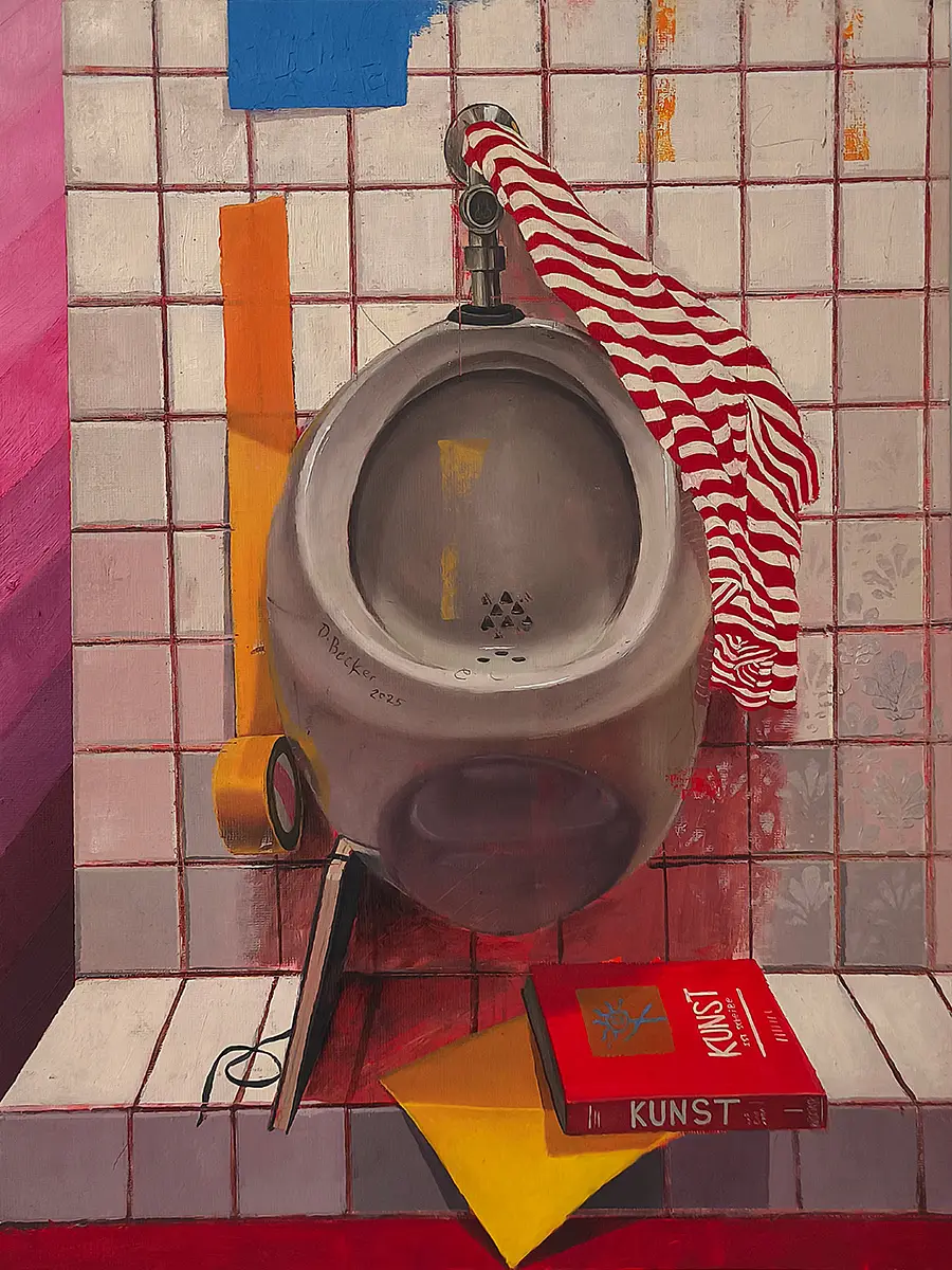 In meiner Arbeit verarbeite ich alltägliche Beobachtungen. Der Fokus liegt dabei auf Individualität, Geschlechtsidentität und dem Verhältnis zum Körper. Der Körper als Gefäß zieht sich als zentrales Motiv durch meine Gemälde, Zeichnungen und Skulpturen. Das Gefäß ist für mich mehr als eine physische Form: Es ist ein Behältnis für Erfahrungen, Erinnerungen, Transformation, Spiritualität und Rituale. Ich beschäftige mich mit gesellschaftlichen Hierarchien und setze Statussymbole ein, um die Spannung zwischen Individuum und sozialem Gefüge zu thematisieren. In meiner Kunst verbinde ich formale Reduktion mit komplexen gesellschaftlichen und persönlichen Fragestellungen. Schwierigen Themen nähere ich mich oft mit Humor und Ironie und auch romantische Klischees gehören zu meiner Bildsprache. Mein Stil ist einfach und klar, mir ist wichtig, dass nichts beschönigt und nur das Essenzielle dargestellt wird. So lotse ich den Betrachter durch das Spannungsfeld zwischen Chaos und Einordnung und lade ein, menschliche Sehnsüchte kritisch zu reflektieren.