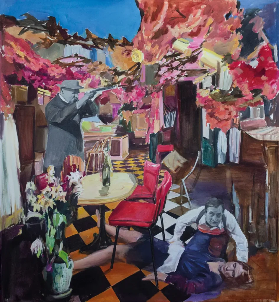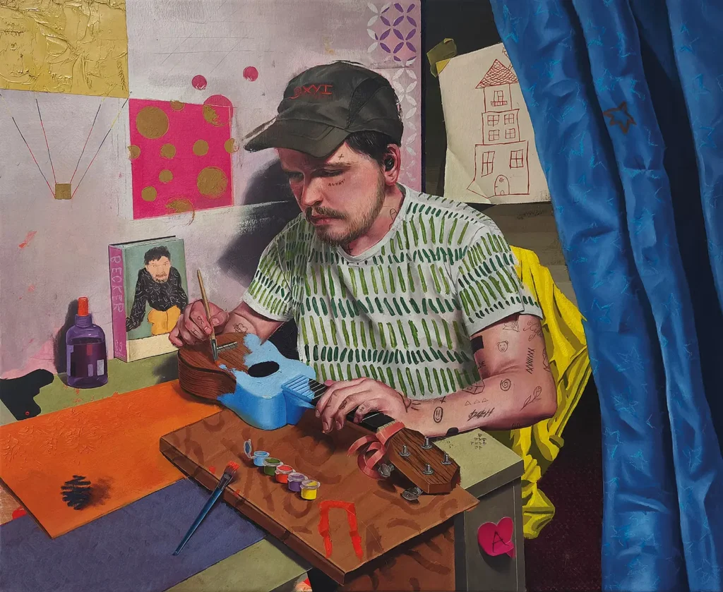 Ich versuche, mich in meinen Bildern nicht auf ein bestimmtes Thema oder Konzept zu konzentrieren. Für mich zählt vor allem, wie der Künstler malt, nicht was er malt. Das beeinflusst dennoch die Auswahl meiner Motive. Ich beziehe mich auf Gemälde anderer Künstler – dabei wähle ich beliebige Bilder, auch solche, die mir nicht gefallen, und interpretiere sie auf meine Weise, um ihre Geschichte neu zu erzählen. Dieser Ansatz ermöglicht mir, das Original zu transformieren und etwas Eigenes zu schaffen. Beim Malen kämpfe ich ständig mit meinem inneren Punk und Anarchisten. Anfangs arbeite ich sorgfältig, aber ich weiß, dass irgendwann der Moment kommt, an dem ich die Kontrolle verliere – und genau da beginnt für mich die Kunst. Passieren Fehler, versuche ich, sie in etwas Positives zu verwandeln. Meine Arbeiten geben den Betrachtern völlige Freiheit in der Interpretation. Durch absurde Elemente und persönliche Anspielungen fordere ich dazu auf, eigene Bedeutungen zu finden und meine Werke auf individuelle Weise zu verstehen.