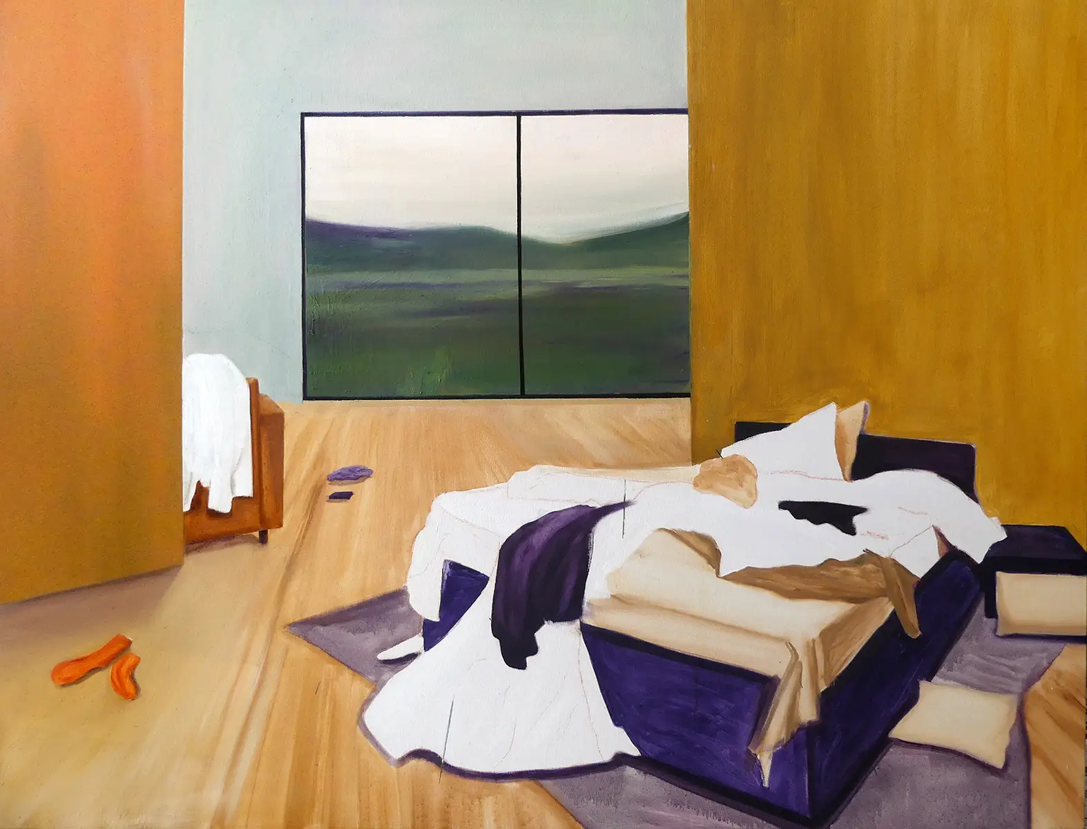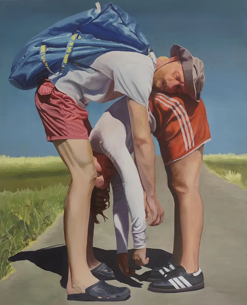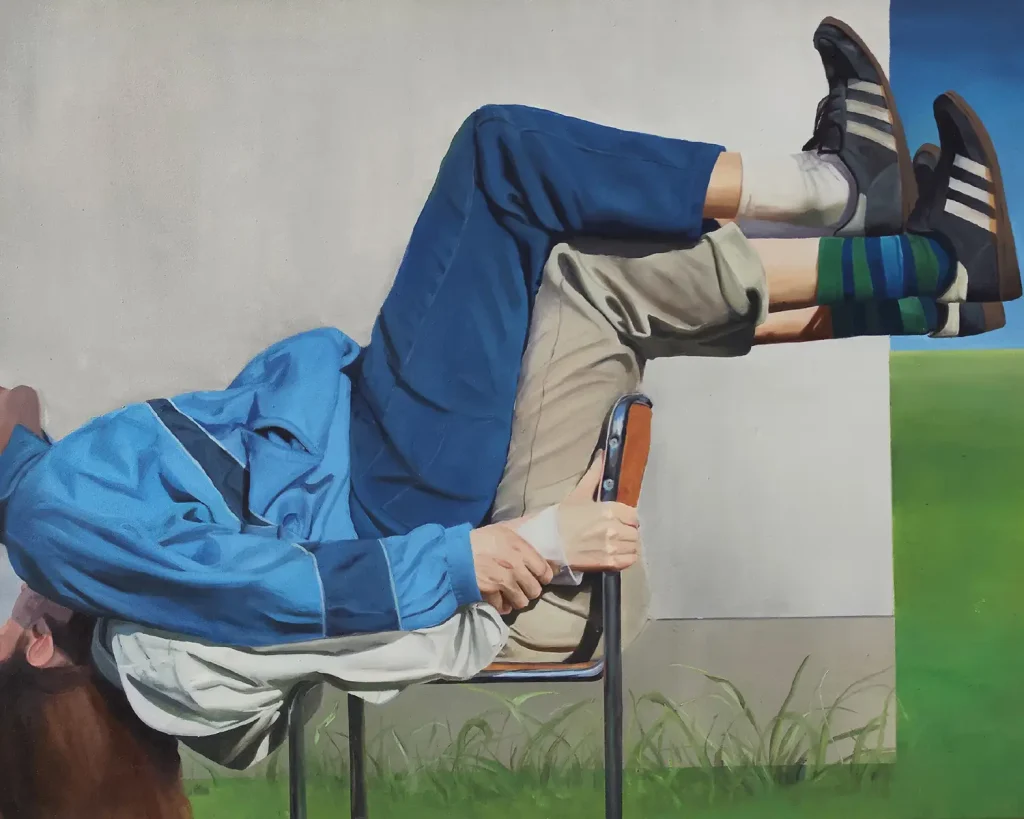 In meiner Arbeit steht die Malerei im Mittelpunkt und Gegenständlichkeit spielt eine zentrale Rolle. Absurdität, Berührung und Stille sind wiederkehrende Themen. Mich beschäftigt die Frage, wie sich das Aufeinandertreffen von Körpern anfühlt und wie sich das bildlich übersetzen lässt. Mit meiner Malerei erforsche ich unterschiedliche Realitäten. Erinnerungen und alltägliche Einflüsse dienen mir als Inspiration, wobei wiederkehrende Motive – etwa Landschaften – zur Erzeugung von Atmosphäre eingesetzt werden. Ich begreife meine künstlerische Praxis als ein offenes Forschungsspektrum, in dem das visuelle Empfinden zentrales Leitmedium darstellt. Mich beschäftigt außerdem die Frage, inwieweit Sinn für die Kunst von Bedeutung ist. Meiner Meinung nach ist die Unterscheidung zwischen Sinn und Unsinn hier zweitrangig – es wird immer beides geben und es gibt unzählige Varianten von Sinn. Verschiedene Werke wollen Unterschiedliches ausdrücken, verfolgen andere Aussagen und sind in anderen Momenten relevant.