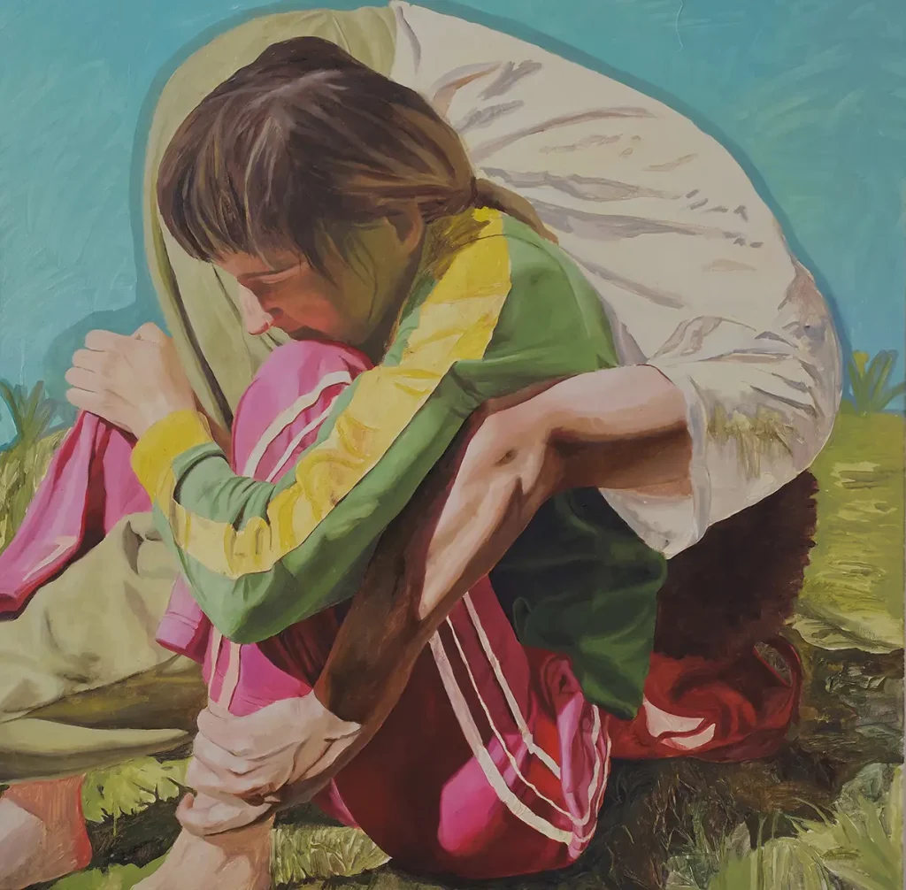 Ein zentrales Thema meiner Arbeit ist das Sichtbarmachen intimer Momente – Augenblicke der Stille, der Verletzlichkeit oder der Selbstvergessenheit. Ich interessiere mich für die feinen Gesten und Haltungen, in denen sich innere Zustände spiegeln, sowie für die Art und Weise, wie Menschen in ihrem alltäglichen Umfeld mit sich selbst oder anderen interagieren. Dabei spielen Nähe und Distanz, das Ungesagte und das Flüchtige eine große Rolle. Meine Bilder halten diese Momente fest, ohne sie eindeutig zu deuten, und eröffnen damit Räume für individuelle Assoziationen. Besonders fasziniert mich das Zusammenspiel von Farbe und Licht, das ich nutze, um Atmosphäre zu schaffen und die emotionale Wirkung einer Szene zu verstärken. Die Kompositionen meiner Arbeiten zeichnen sich durch eine klare Setzung von Figuren im Bildraum aus. Körperlichkeit und Ausdruck stehen dabei im Mittelpunkt, während die Umgebung oft auf das Wesentliche reduziert wird, um den Fokus auf das Menschliche zu lenken.