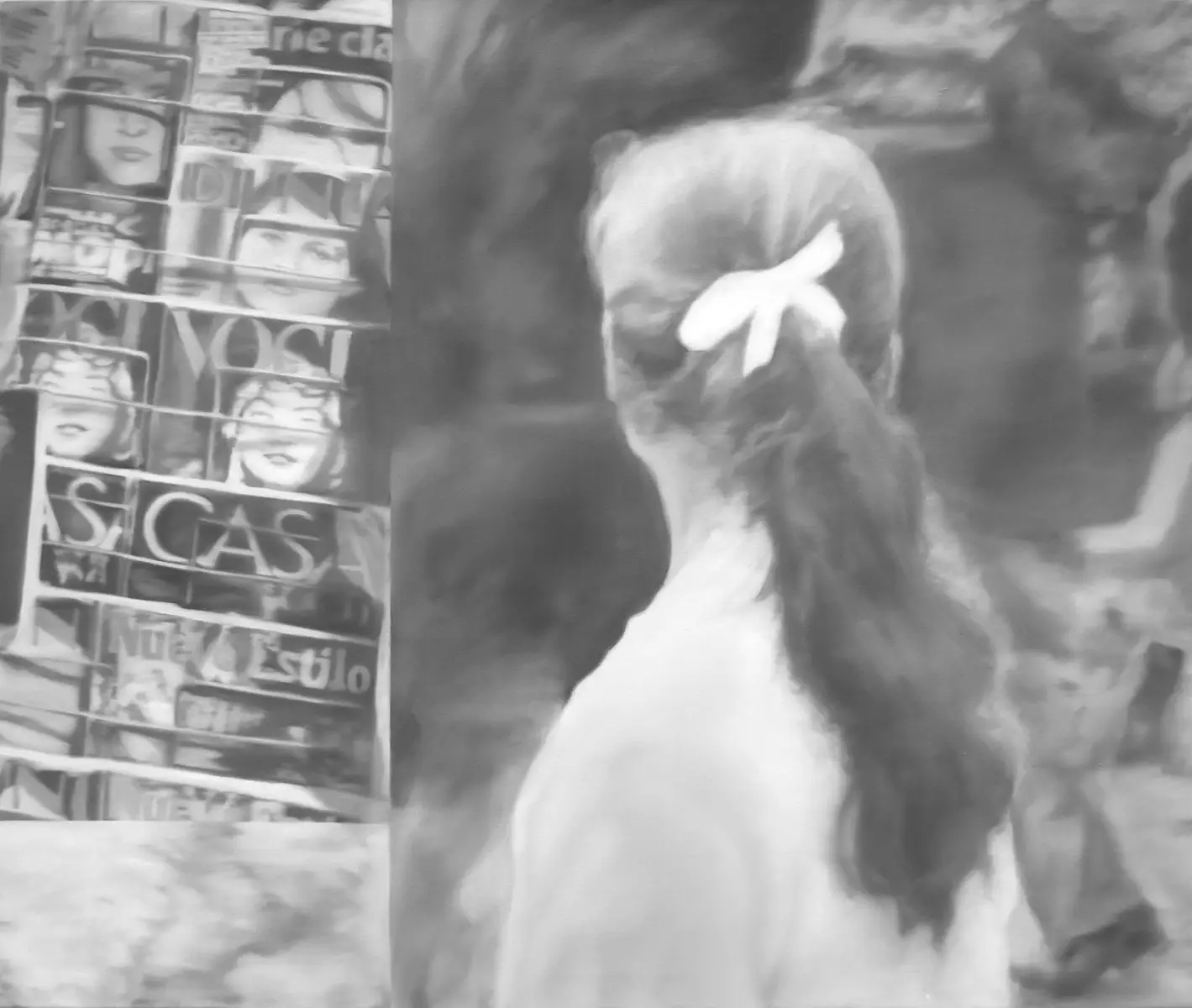 Mich beschäftigt die Frage nach Herkunft, Erinnerung und Vergessen, insbesondere in meiner eigenen Familiengeschichte zwischen Nordspanien und Deutschland. Vieles darin blieb mir bisher verborgen. Ich erinnere mich an Fragmente, an bruchstückhafte Erzählungen meiner Großmutter aus Asturien. Diese Erinnerungen sind wie verblasste Bilder in meinem Gedächtnis und wurden zum Ausgangspunkt meiner künstlerischen Arbeit. Bei der Auflösung eines Hauses fand ich alte Fotografien. Je mehr ich mich mit ihnen beschäftigte, desto mehr wollte ich über diese Menschen wissen. Ich reiste in das spanische Heimatdorf meiner Großmutter. In Archiven, durch Zeitungsartikel und Gespräche begann sich etwas zu fügen. Zurück in meinem Atelier fing ich an, die kleinen Fotografien zu vergrößern und anhand der Erinnerungen und Erzählungen zusammenzusetzen. Durch das Malen dieser Bilder komme ich den Menschen näher, hole sie zurück ins Gedächtnis und gebe ihnen Bedeutung. Ich mache sie zu einem Teil der Gegenwart, gegen das Vergessen.