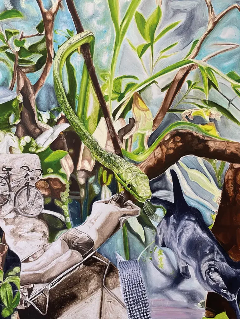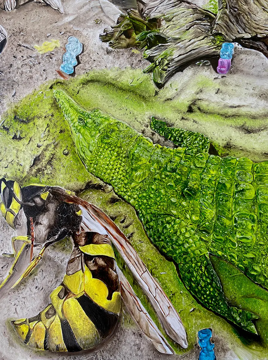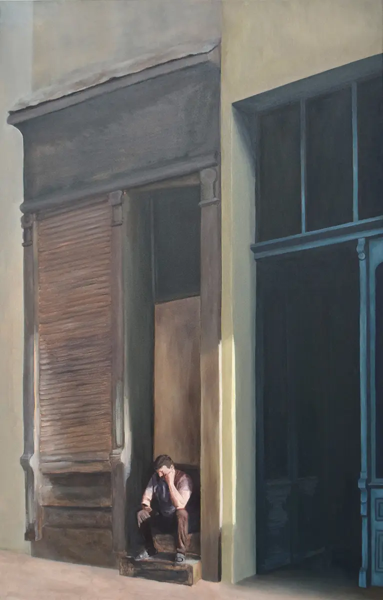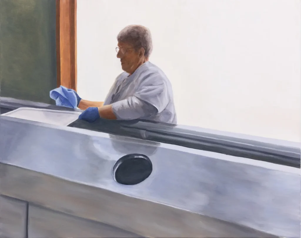Einsamkeit, Introspektion, Verfall, Vergänglichkeit, das sind Themen, mit denen ich mich aktuell in meiner Arbeit befasse. Das Dargestellte ist oft banal und meist direkt aus dem Alltag entnommen: ein Blick in den Badezimmerspiegel, ein Ausblick aus dem Fahrzeug oder der Blick auf die Konsequenzen des eigenen Handelns. Obschon menschliche Präsenz in den Werken immer vorhanden ist, kommen Figuren im Sinne von Porträts nicht wirklich vor – es sind nur Körperteile oder versteckte Figuren. So steht die Handlung im Vordergrund. Inspiriert von der malerischen Technik der flämischen und italienischen Alten Meister, arbeite ich oft bewusst in mehreren Schichten. Meine Malerei erzeugt eine Spannung zwischen dem Schönen und dem Unbehaglichen. Betrachterinnen und Betrachter sollen dabei ästhetisch und emotional aufgefangen werden. Mit meinem Werk versuche ich, meinen Alltag zu begreifen und ihn den Betrachtenden aus meiner eigenen Perspektive zu zeigen.