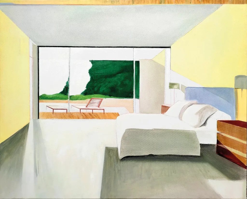 Künstlerisches Arbeiten verstehe ich als einen Akt der Verdichtung und Übersetzung: Aus der Flut an Bildern, der wir täglich ausgesetzt sind, extrahiere ich eine Parallelwelt, die die Außenwelt beleuchten kann, ohne ihr unbedingt zu entsprechen. Auf der Leinwand und im Ausstellungsraum konstruiere ich Interieurs, die kühl konzipiert und doch von menschlicher Wärme durchdrungen sind. Diese imaginären Räume erscheinen von unverrückbarer Ruhe, beherbergen aber auch Brüche und Ambivalenzen. Entscheidend ist immer auch die Frage nach den Möglichkeiten der figurativen Darstellung und deren Durchbrechung. Durch eine reduzierte, aber entschlossene Farbigkeit, eine implizite Narration und die Auslassung zugunsten des Wesentlichen versuche ich, einen sinnlichen und emotionalen Zugang zu den großen Fragen des zeitgenössischen (Zusammen-)Lebens zu schaffen.