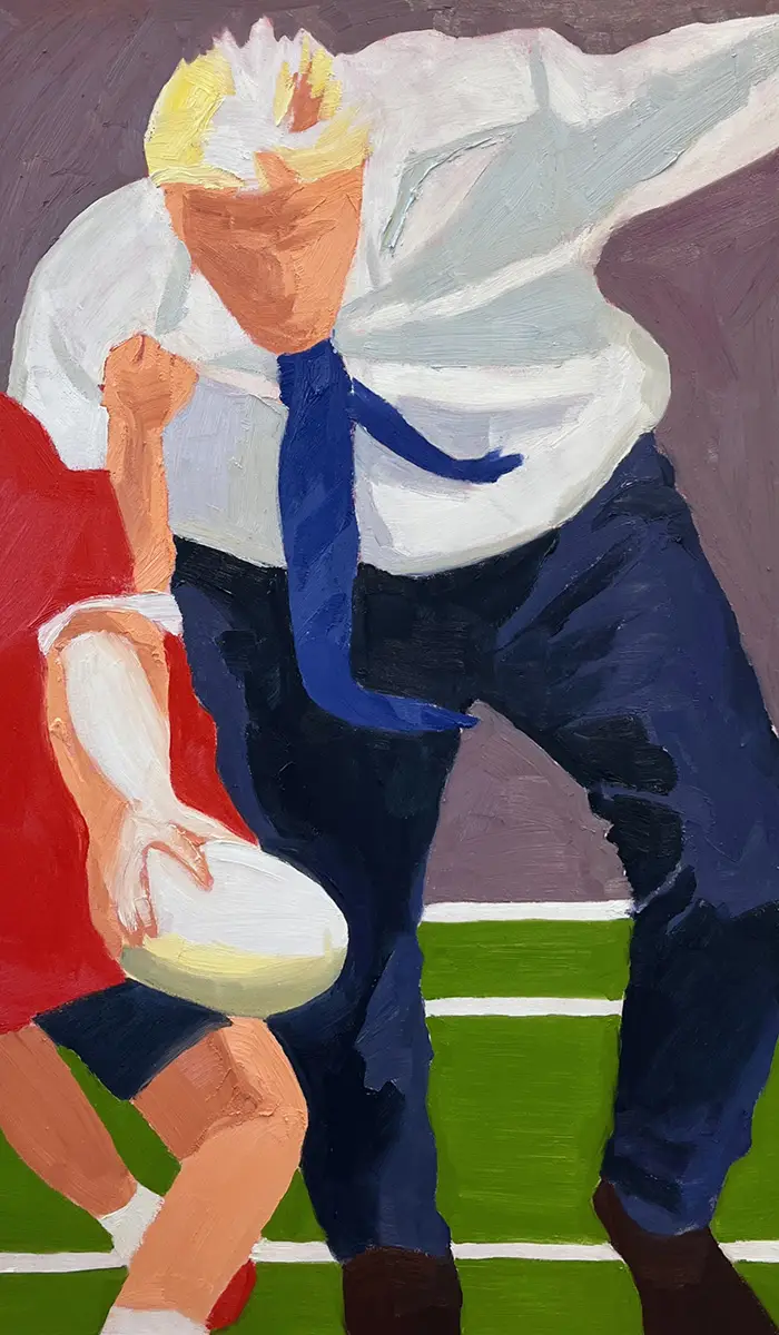 Im Zentrum meiner künstlerischen Arbeit stehen Motive, die mich täglich umgeben: öffentlich zugängliche Pressefotos, aber auch private Schnappschüsse. Mich interessieren Motive, die etwas in uns auslösen, weil wir sie zu kennen glauben. Fotos, die ich als Vorlage für meine Malerei nutzen möchte, bearbeite ich zu stark überbelichteten Versionen. Dadurch erhalten Farben eine andere Strahlkraft, einzelne Flächen treten deutlicher hervor und lösen sich vom Motiv ab. Die leichte Abstraktion, die dadurch entsteht, hilft mir, die Fotovorlagen in Flächen zu begreifen und eben diese in dicken, unverdünnten Ölschichten auf die Leinwand zu bringen. Im Prozess des Malens, durch die Flächen und Ebenen, wird die Leinwand für mich zur Landschaft. Farbflächen werden zu Territorien, pastose Ölfarbe zu topografischen Markierungen. Die Grenzen, die durch das Aufprallen der verschiedenen Farben aufeinander entstehen, begreife ich als Karten von kultureller Prägung, von Sehgewohnheiten und von Machtstrukturen.