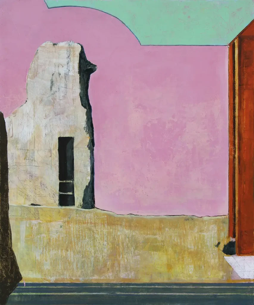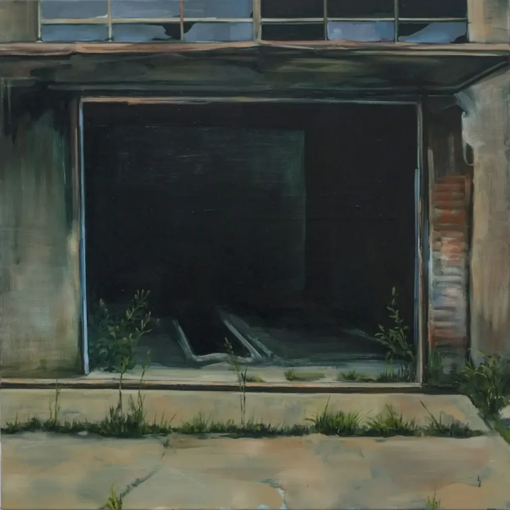 Die Werke Oil Pit 3 und The Tower erkunden die Grenze zwischen Wirklichkeit und Fiktion. Sie erforschen die Natur des Raums und wie er auf der zweidimensionalen Fläche der Leinwand erscheint. Die Bilder bauen Illusion von Tiefe auf, aber sie zeigen auch, wie Malerei selbst funktioniert, und hinterfragen ihre Verbindung zur Repräsentation. Dahinter stehen theoretische Themen wie die Politik der Landschaft und ihre Beziehung zu ungelebten Vergangenheiten und Erinnerungen. Die Gemälde stammen aus einem laufenden Projekt poetischer Recherche. Sie führen einen kontinuierlichen Dialog mit den Alten Meistern – von Tizian und Poussin bis zu den deutschen Romantikern. Dafür beschäftige ich mich mit Perspektive, Atmosphäre und Wahrnehmung. Ich möchte ein Raumgefühl schaffen, das fast greifbar wird, sodass der Betrachter sich in den Abgrund der Leere hineingezogen fühlt. Die Romantiker zeigen, wie Raum und Abstand funktionieren, weil ihre Bilder den Betrachter gleichzeitig hineinlassen und fernhalten.