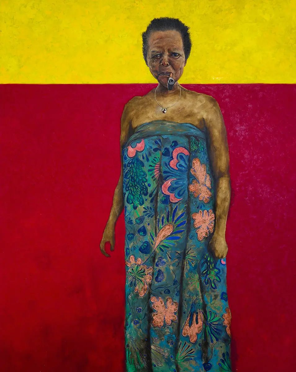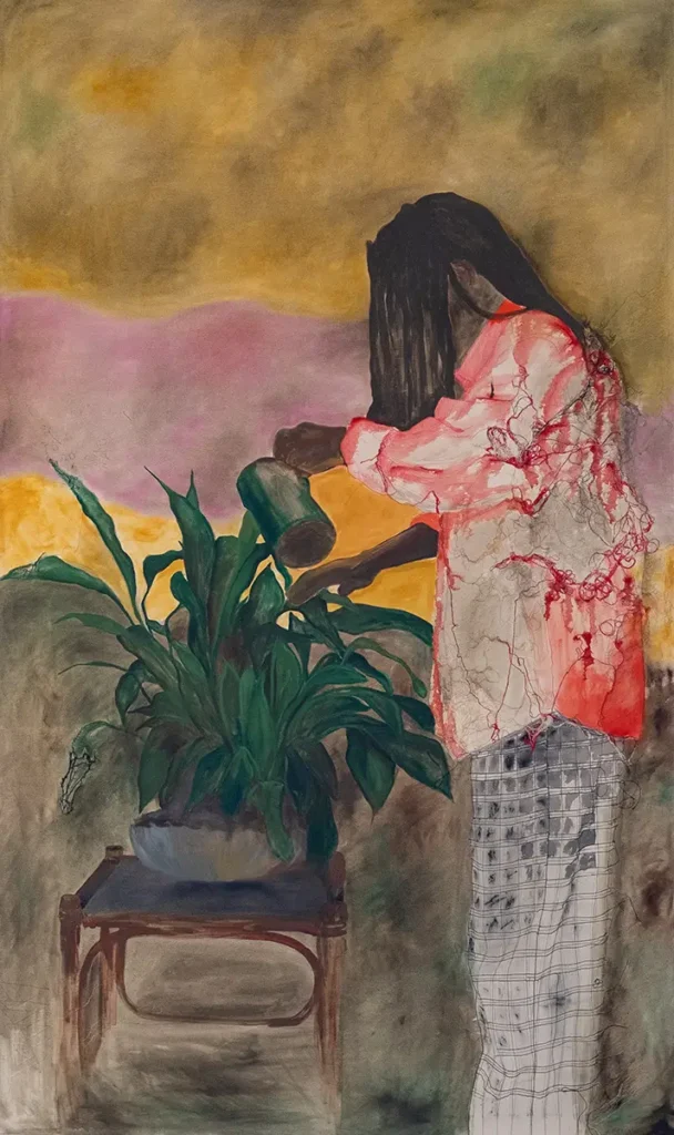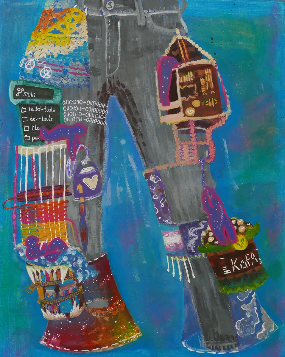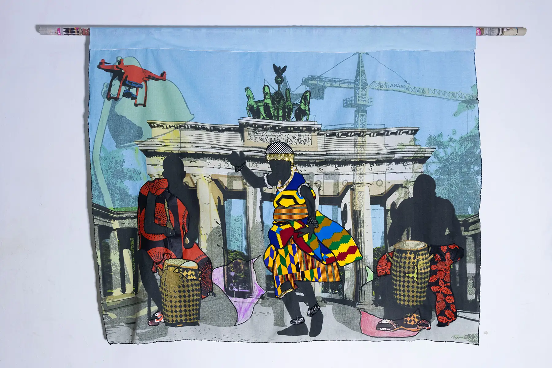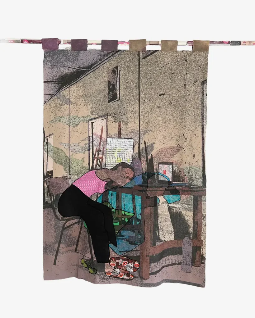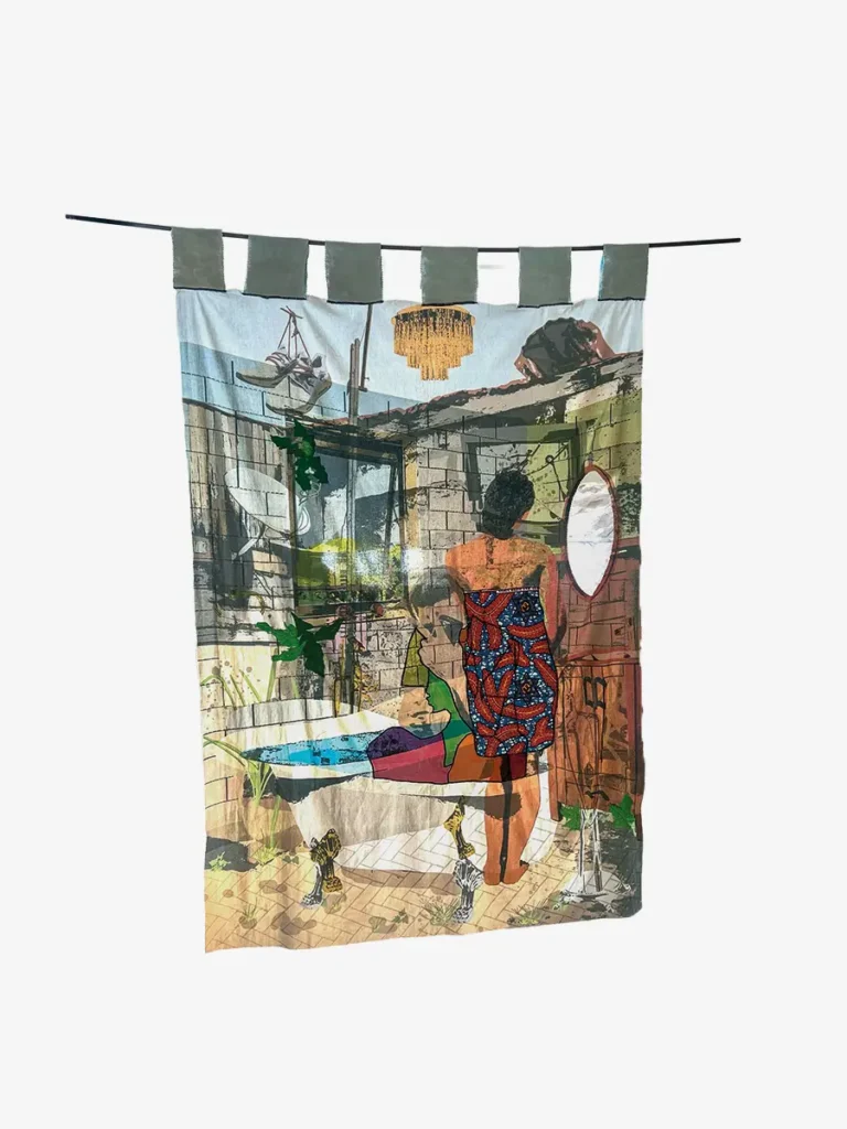 In meiner Arbeit verschmelzen textiles Handwerk und bildnerische Geste zu einem Dialog, der das Alltagsleben auf dem afrikanischen Kontinent würdigt und zugleich Fragen nach Identität, Erinnerung und kulturellem Erbe aufwirft. Meine Gemälde erzählen von Ursprung, Wandel und Verbindung. Dabei sind die Menschen Träger*innen von Geschichten, Emotionen und Erfahrungen. Sie verkörpern die Energie des Alltags – die Freude, den Zusammenhalt, die Arbeit und die Widerstandskraft im Leben afrikanischer Gemeinschaften. Durch das Nähen als gestalterischen Akt verknüpfe ich meine Kunst direkt mit einer handwerklichen Tradition, die in vielen afrikanischen Gesellschaften eine tragende Rolle spielt. Das Zusammennähen von Stoffen steht dabei für Zusammenhalt, Heilung und das Bewahren von Geschichte. Farbe, Struktur und Faden werden in meinen Arbeiten zu gleichwertigen Ausdrucksmitteln. Diese Kombination spricht eine sinnlich-kulturelle Sprache und öffnet einen Raum, in dem sich Dimensionen von Kunst, Identität und Erinnerung begegnen.