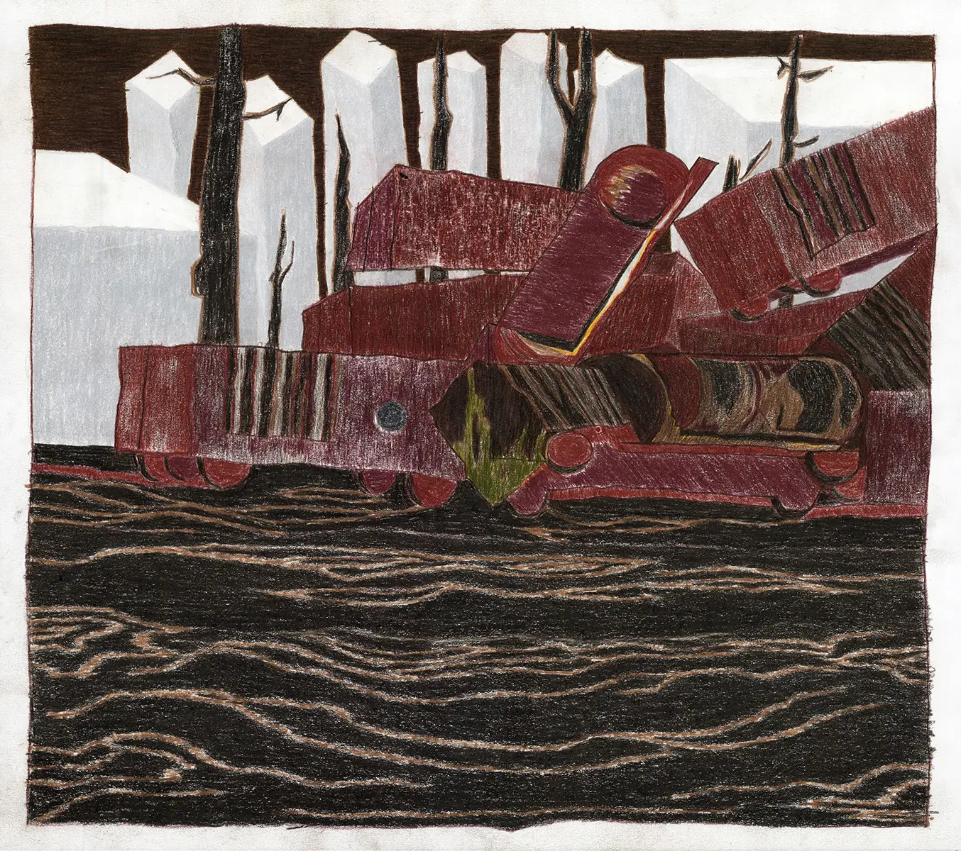 In meiner künstlerischen Arbeit setze ich mich mit menschengemachten Katastrophen auseinander. Mein Hauptmedium ist dabei die Zeichnung. Die beiden ausgewählten Arbeiten stellen die Ursprünge einer Serie dar. Zugungunlcpk Zugunglüc, l ugunglpck Zugunglück zugunglpcl Zugunglück zugunglück entstand nach dem Eisenbahnunglück in East Palestine, Ohio. Häsuer Häsuer HJäsuer Häszue Häsuer Häsuer Häuser zeigt ineinander geschmolzene Häuser vor einem blauen Strahlen, einem Phänomen, das auf starke radioaktive Strahlung hindeutet (Tscherenkow-Strahlung) und beim Tschernobyl-Desaster sichtbar gewesen sein soll. In meinen Arbeiten erforsche ich die Implikationen des Gezeigten und die Bedeutung dieser Dinge für uns Menschen. Eine Naturkatastrophe, ein Krieg oder jede andere Form von Tragödie stehen in großen Spannungsfeldern, die weit über die eigentlichen Vorfälle hinausgehen und die in Anbetracht dessen, worauf wir uns hinbewegen, nur noch weiter an Dimension und Schwere zunehmen werden.